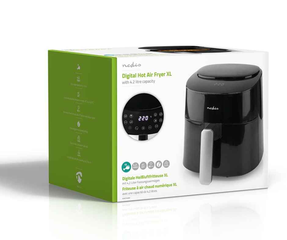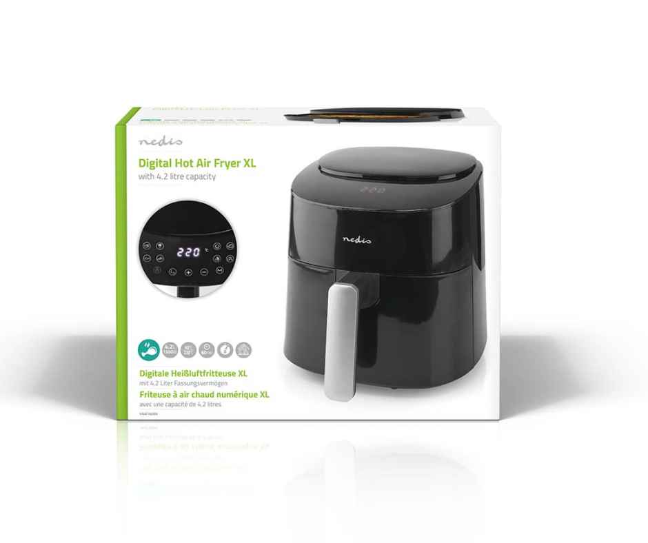 Air Fryer Nedis - Fritadeira de ar quente - 4,2 l | Temporizador: 240 min | Número de programas predefinidos: 8 | Digital