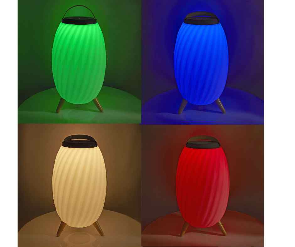 Selecione branco quente ou uma das cores RGB, reproduza a sua própria lista de reprodução e crie o ambiente adequado para cada ocasião graças a esta coluna Bluetooth® com luz ambiente.