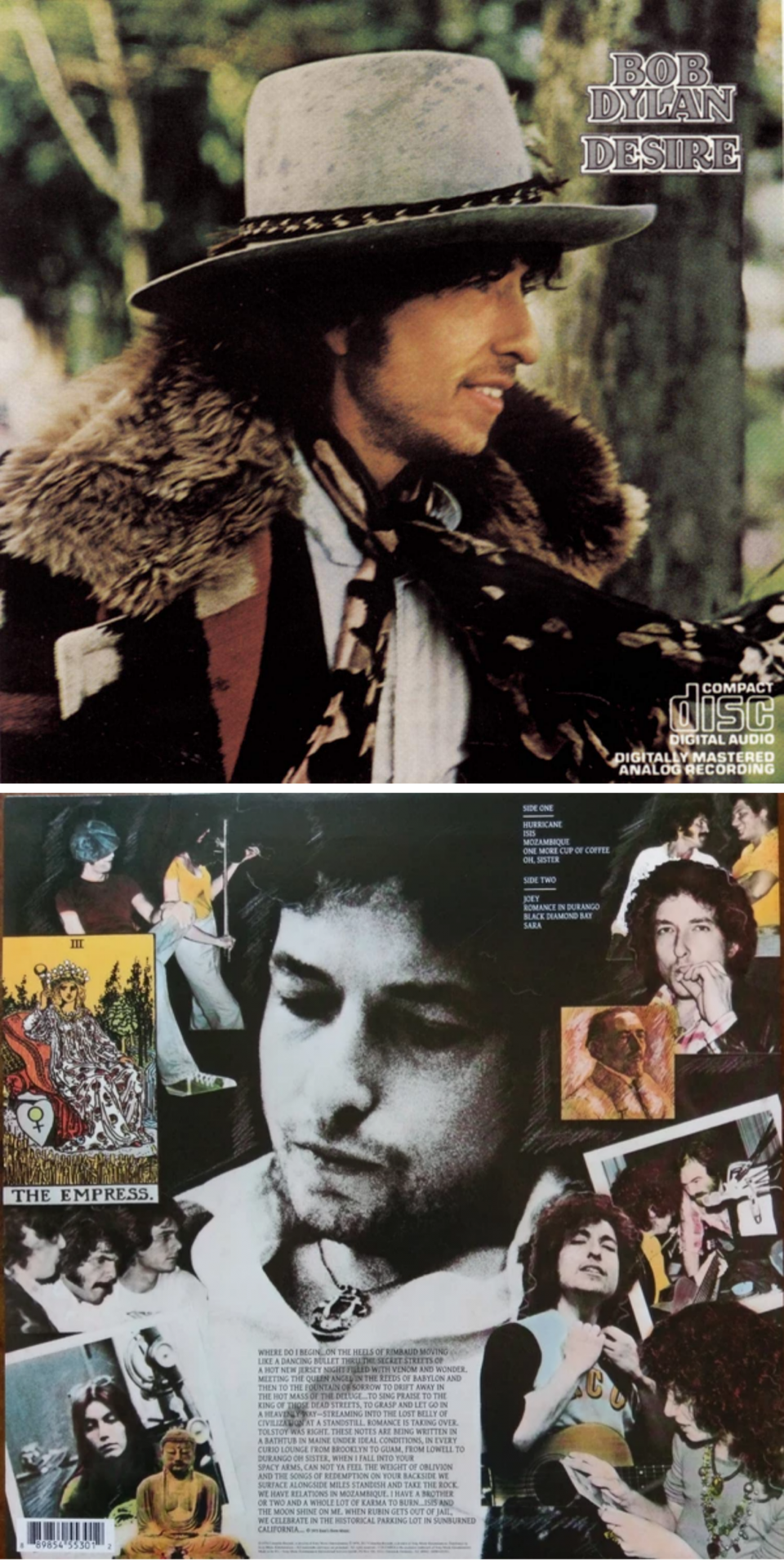 "Desire" foi lançado em 1976 no início da era da Rolling Thunder Tour de Bob Dylan, que literalmente o levou ao redor do globo várias vezes nos anos seguintes. O CD dança virtuosamente entre estilos mantidos juntos pela excelente letra de Dylan. As canções mais marcantes do álbum nº 1 são sem dúvida a tragédia do boxe "Hurricane", "Sara", "Mozambique" e especialmente "Isis", que é considerada a melhor composição de Dylan dos anos 70.