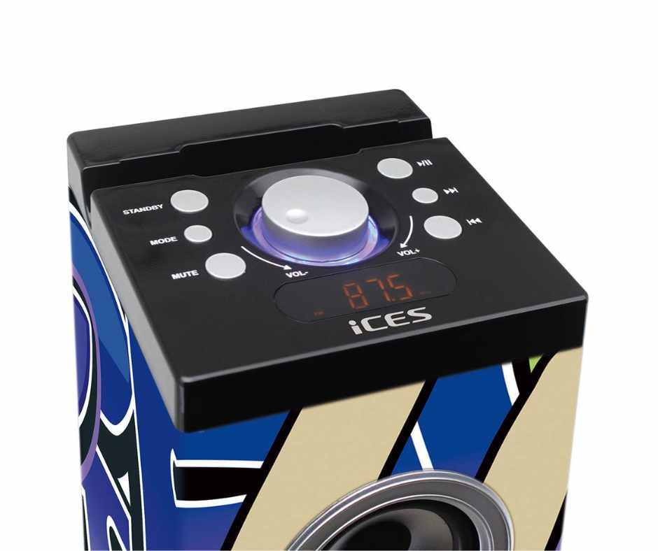 A coluna Bluetooth Ices IBT-6 é a coluna ideal para a sua casa, quarto das crianças, espaço de trabalho ou festas. Pode reproduzir facilmente as suas músicas favoritas ligando o dispositivo ao seu telemóvel ou tablet através de Bluetooth. Também pode reproduzir música a partir de uma memória USB ou cartão SD. Além disso, pode configurar a rádio FM com esta coluna.