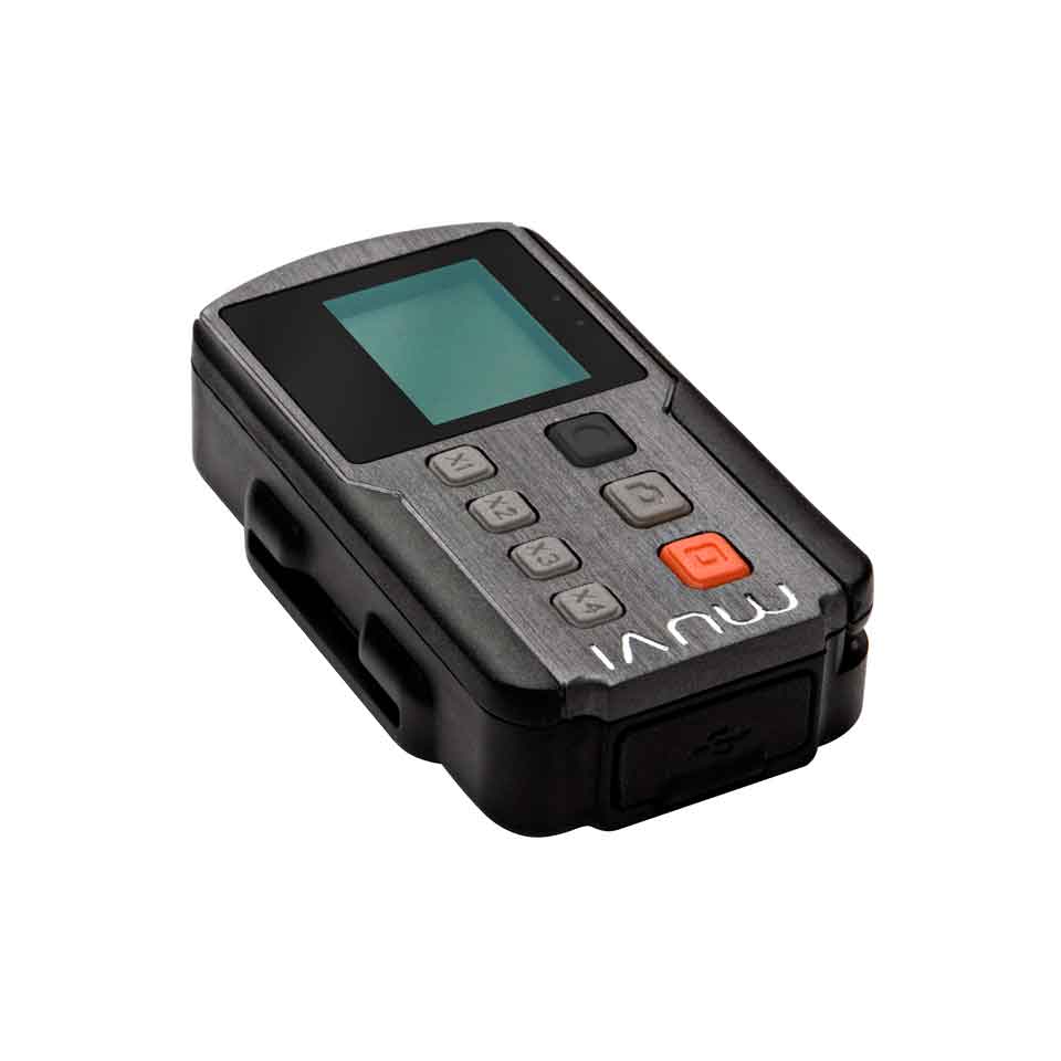 O novo controle remoto sem-fios Wi-Fi possui uma bateria recarregável de íons de lítio integrada que pode durar até 5 horas de uso contínuo quando emparelhado com a sua MUVI K-Series, para que tenha a certeza de nunca perder um momento.