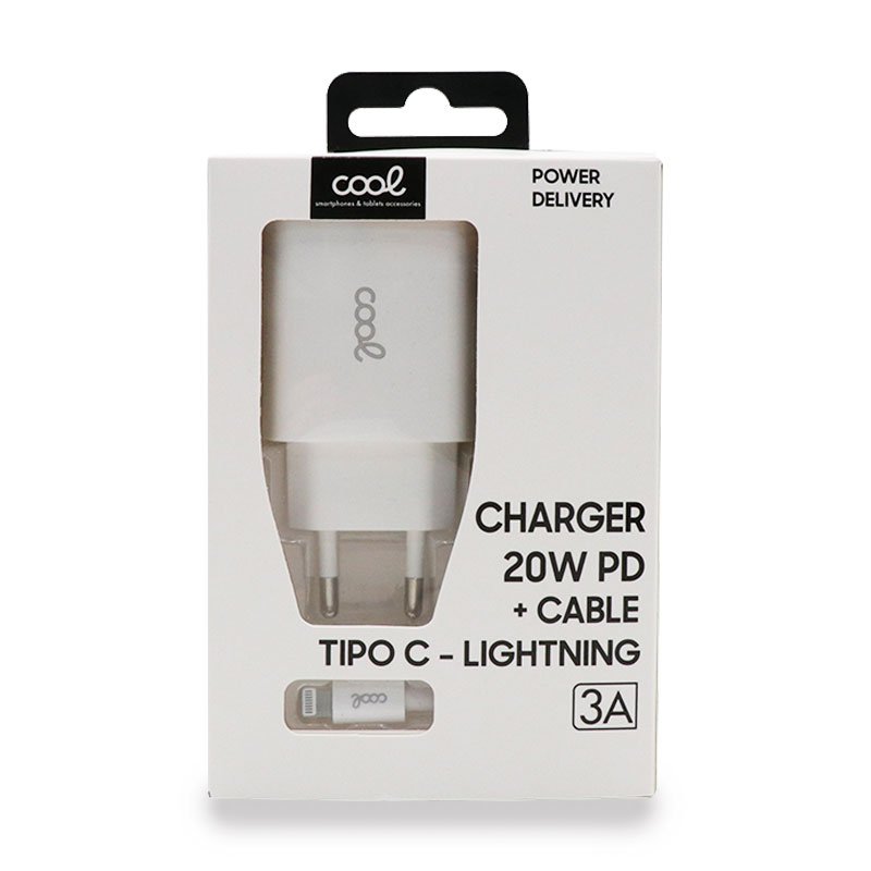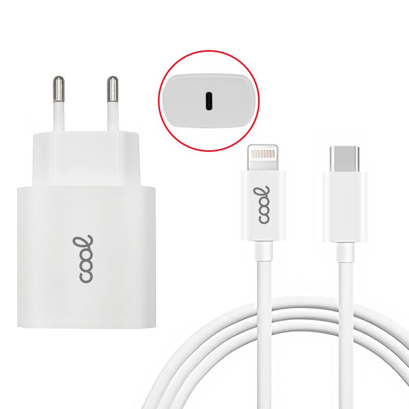Cool | Carregador de rede para iPhone COOL TYPE-C Entrada PD + Cabo Tipo C - Lightning 1,2 metros (20 W)