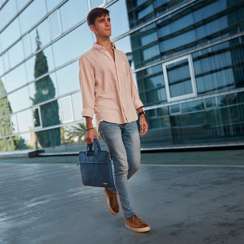 Estojo com bolso duplo, com zíper duplo metálico ultra-resistente para fechar e proteger seu portátil, iPad, tablet.