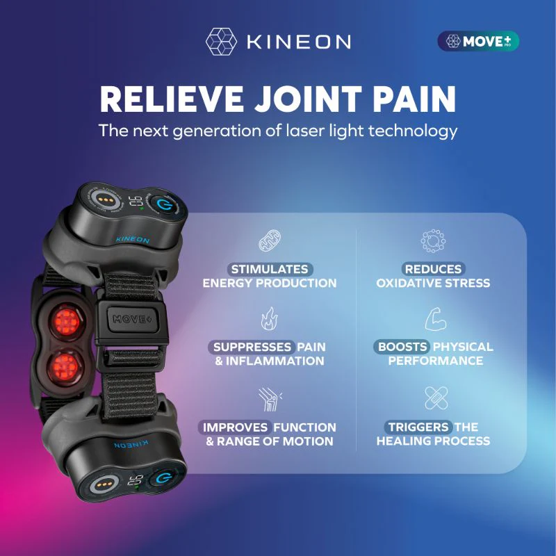 O MOVE+ utiliza LEDs e lasers direcionados para ajudar a aliviar dores nas articulações e acelerar a cicatrização.