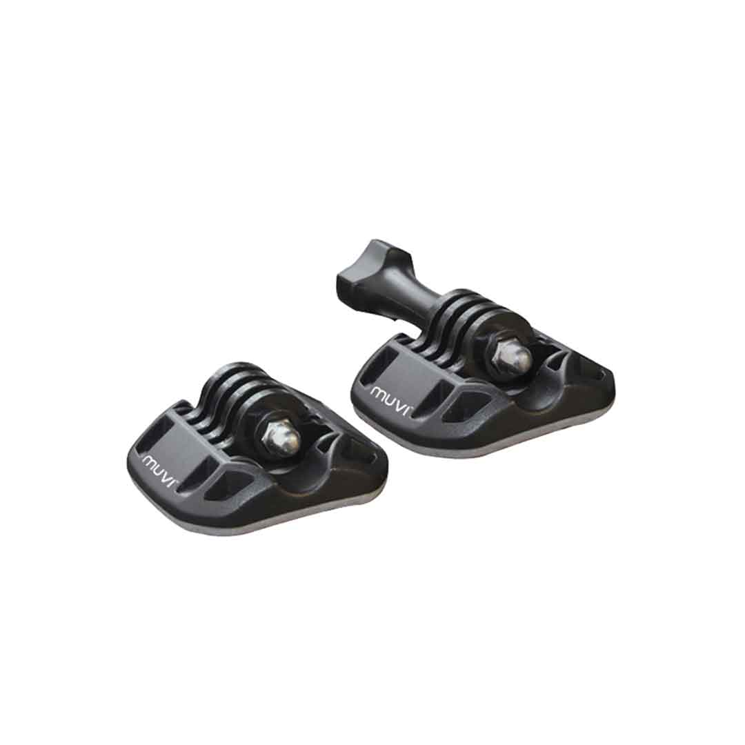 A montagem curva é projetada para montagem em capacetes de todos os tipos, enquanto a montagem plana é perfeita para qualquer superfície plana. São compatíveis quando a Série K está na caixa à prova d'água ou quando a MUVI K-Series está na base da montagem plana do tripé.