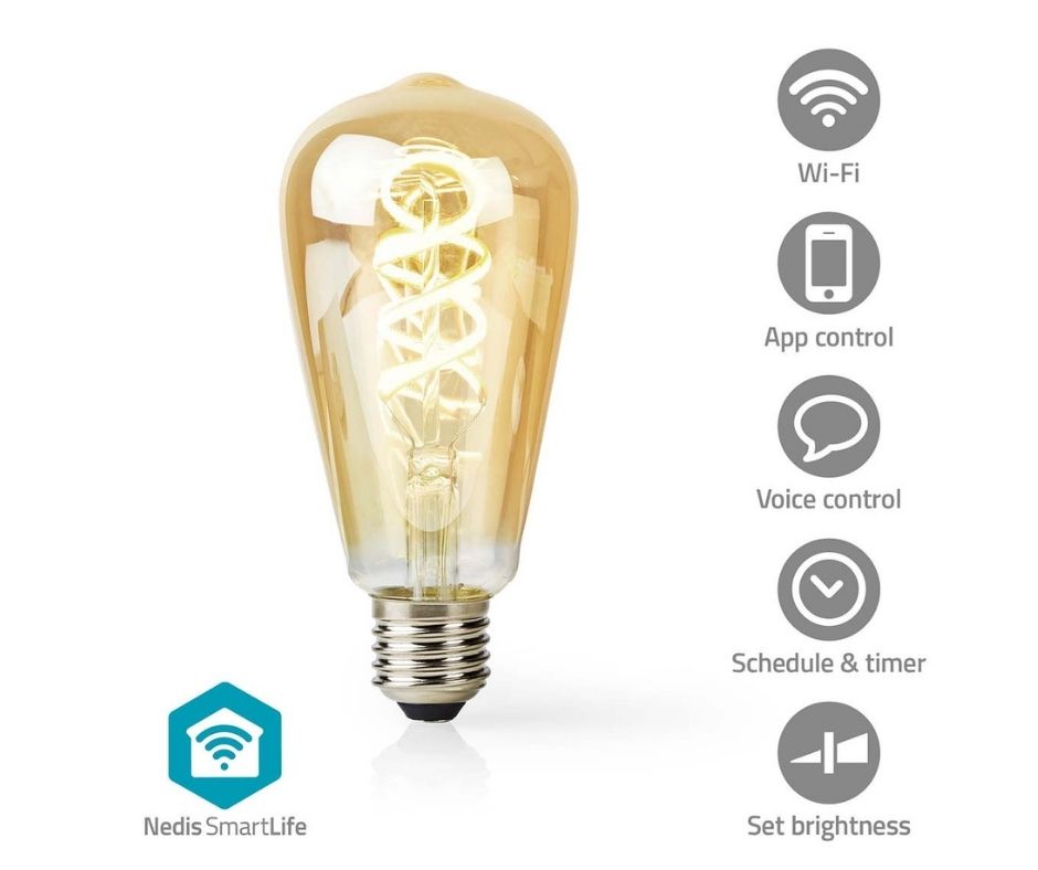 Esta lâmpada inteligente combina a tecnologia mais recente com um aspeto clássico. Pode controlar a luminosidade da lâmpada com a aplicação Nedis SmartLife ou ligar a lâmpada ao Google Home ou Amazon Alexa para funcionar com comandos de voz. Para maior comodidade, pode utilizar o comando remoto inteligente para ligar e desligar ou ajustar facilmente a luminosidade.