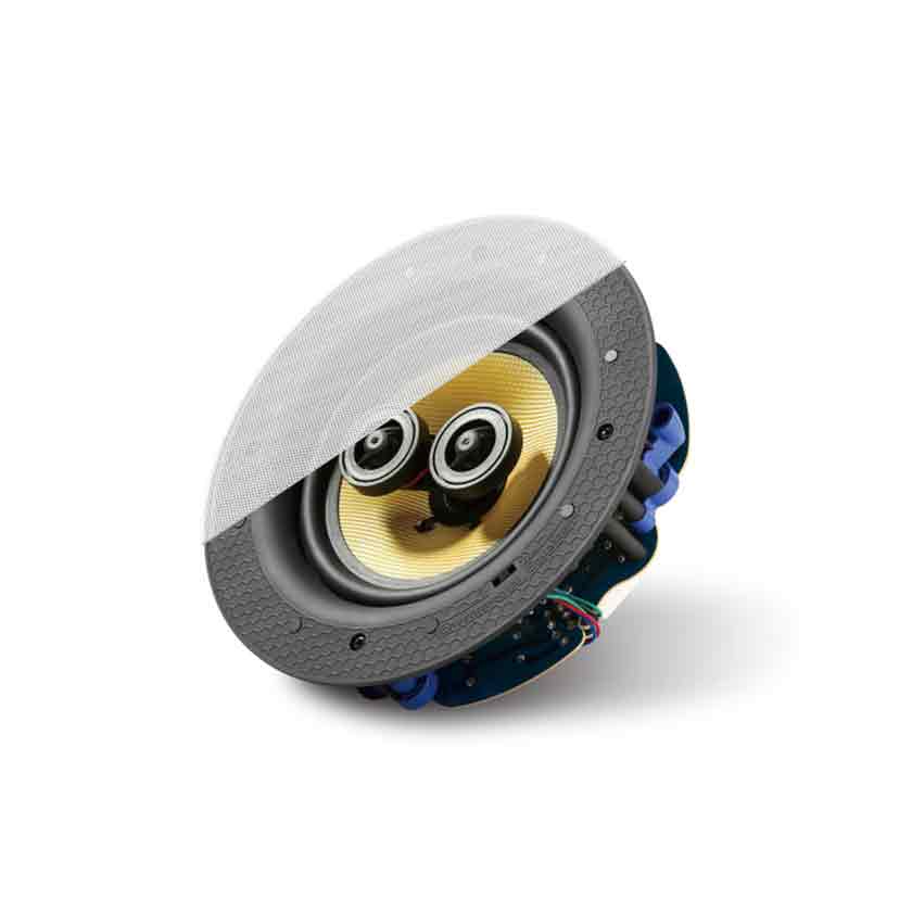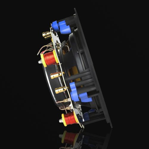 A grade pode ser pintada com tinta de teto para criar uma aparência virtualmente invisível para esses altifalantes de alto desempenho. Apresentando um cone de woofer de fibra de vidro trançado, a resistência da fibra de vidro trançada ajuda o cone a manter sua forma em níveis de energia muito altos e sua baixa massa garante resposta rápida e precisa.