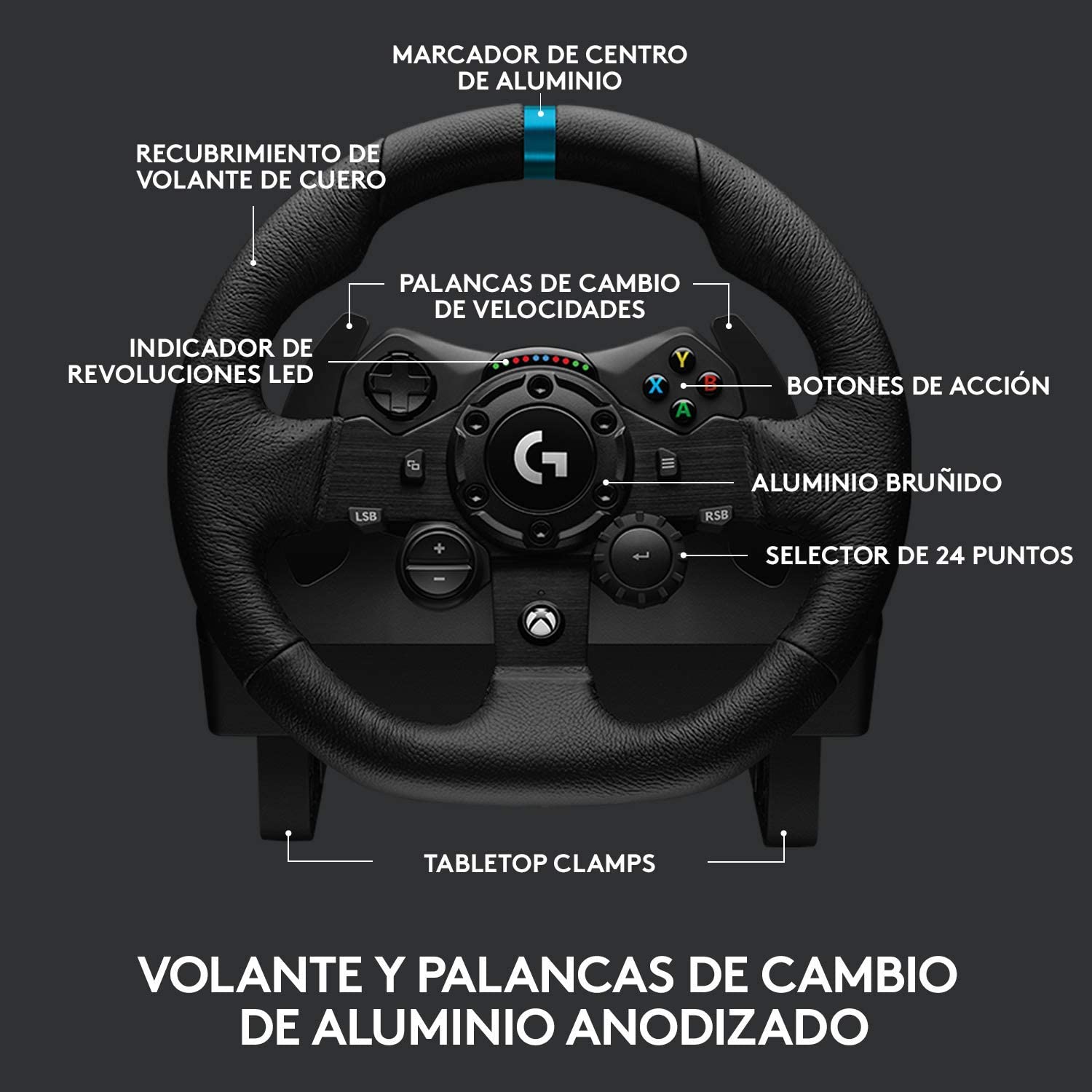Logitech | Conjunto Volantes Pedais G923 Trueforce compatível com Xbox Series X/S, Xbox One e PC - Indicador LEDs RPM - Rotação de 900º - Efeito Force Feedback com Trueforce - Travão Progressivo - Volante Alumínio, Couro e Aço - Pedais Ajustáveis