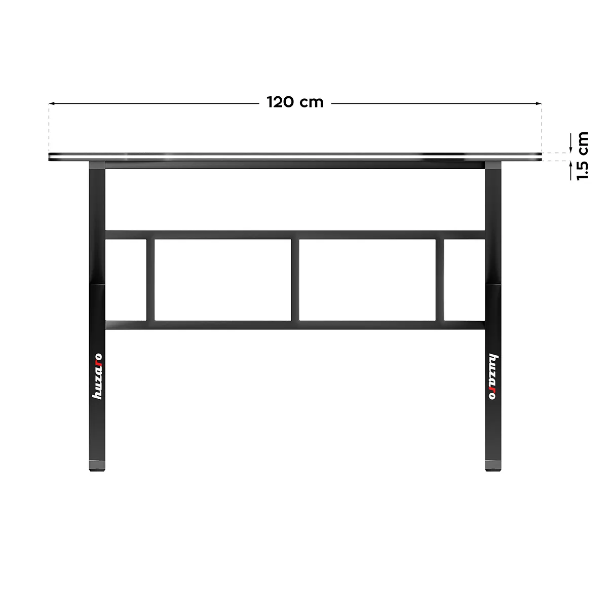 O tampo de 15 mm em MDF resistente proporciona estabilidade mesmo sob cargas pesadas. A estrutura metálica fina confere elegância e robustez, enquanto os pés ajustáveis garantem um nivelamento perfeito em qualquer superfície. As entradas para cabos, dispostas simetricamente, mantêm a secretária organizada e livre de emaranhados.