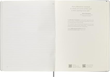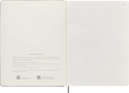 Este caderno tem todas as características do caderno Moleskine clássico, com um layout de página com linhas e uma capa preta