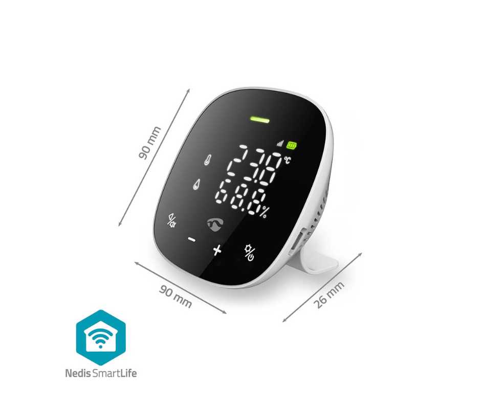 Versátil e adequado para uso em residências, instituições educacionais, instalações esportivas e escritórios, o monitor inteligente multifuncional de qualidade do ar Wi-Fi da Nedis é o seu parceiro de confiança para criar um ambiente interior saudável. Respire tranquilo: escolha Nedis Smart para desfrutar de uma garantia de qualidade do ar sem precedentes.