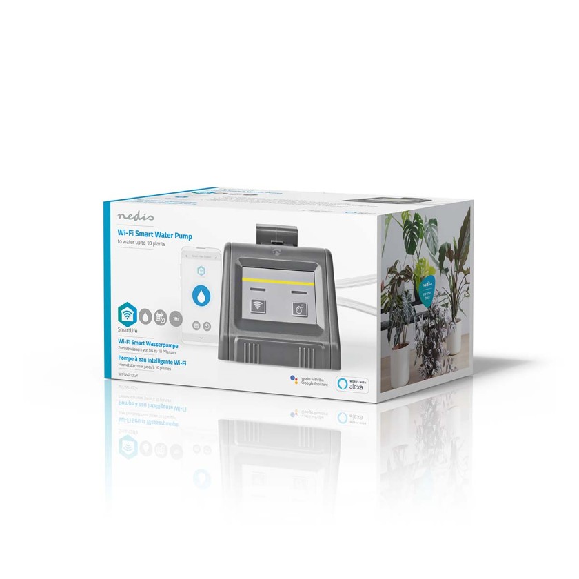 Conecte a bomba d'água inteligente à energia via USB e conecte-a ao seu Wi-Fi através da app Nedis SmartLife. Poderá regar manualmente suas plantas remotamente ou definir um cronograma de repetição: bombear água por um período de 6 segundos a 30 minutos, repetindo a cada hora, dia, semana ou qualquer outro intervalo.
