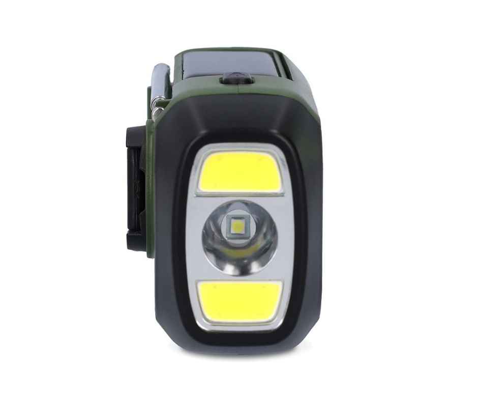 • Carregamento por: dínamo de manivela, painel solar ou cabo USB-C