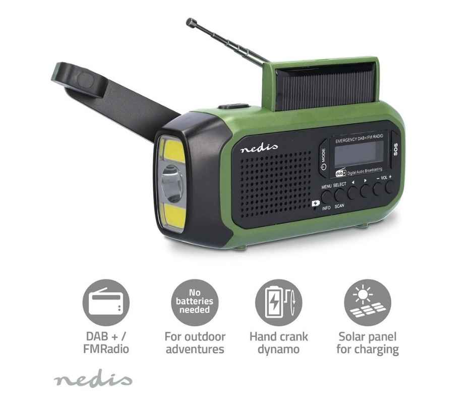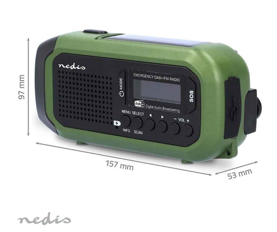 Rádio de emergência Nedis - Design portátil | DAB+ / FM | Alimentado por baterias e por USB / Manivela / Energia solar