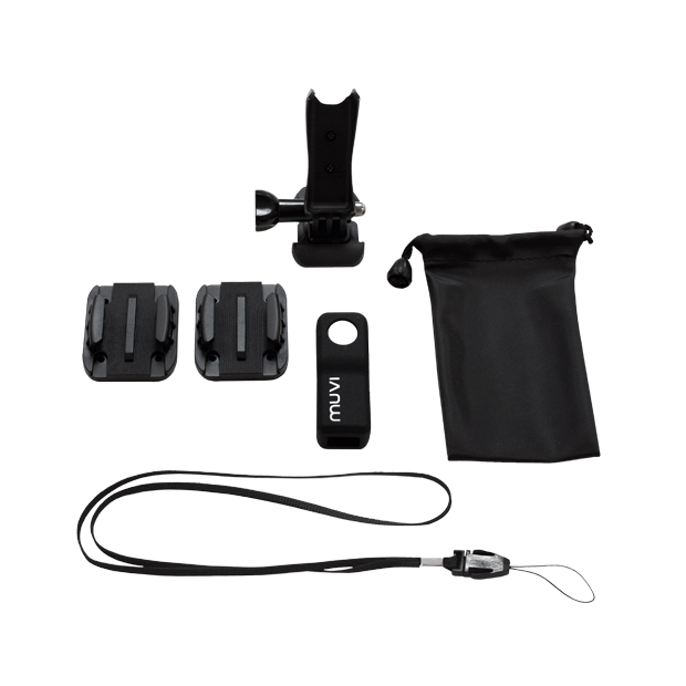 O Muvi Extreme Sports Pack permite montar sua câmera Muvi Micro HD em uma variedade de métodos de montagem. Inclui montagem em berço, montagem plana, montagem curva, bolsa de transporte, estojo de silicone e cordão. Perfeito para atividades ao ar livre.