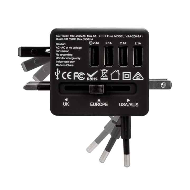 O TA-1 da Veho tem todos os requisitos de um carregador de viagem em apenas um dispositivo prático. Compatível em mais de 150 países, o TA-1 foi projetado para converter o tipo de tomada do seu país para onde quer que você esteja a viajar. Compativel com países como EUA, Reino Unido, Europa, Ásia, Oriente Médio, Austrália e China. Além de ser um adaptador abrangente, o TA-1 também possui 4 portas USB para carregar todos os seus dispositivos. O TA-1 é amplamente testado quanto à segurança com todos os certificados de teste reconhecidos internacionalmente.